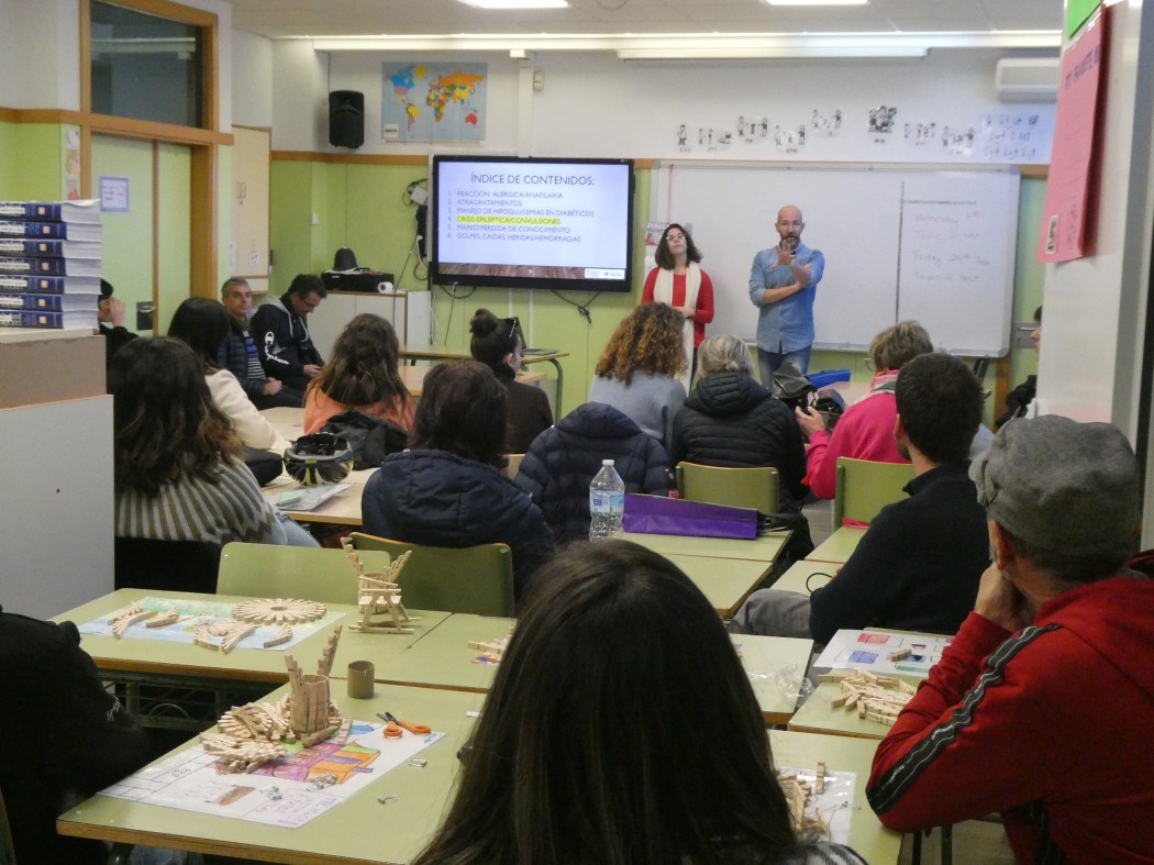Los “Talleres de Primeros Auxilios para Docentes” es una iniciativa para formar a los profesores y profesoras en nociones básicas de cómo reaccionar ante determinadas situaciones con el alumnado. Es una formación totalmente gratuita que se desarrolla con dos sesiones. Este mes de febrero se ha desarrollado en el Colegio Sant Rafael y en marzo se impartirá en el Colegio Muixara.