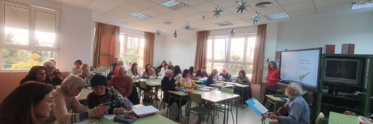 El día de San Valentín, Manuel Palazón, director del grupo manchego Tramontana, ofreció un recital de canciones para más de 30 ucranianos que estudian español en la Escuela Oficial de Idiomas de Benidorm: Piensa en mí, Alma corazón y vida, Paraules d’amor… Los alumnos estuvieron encantados; y los profesores también.