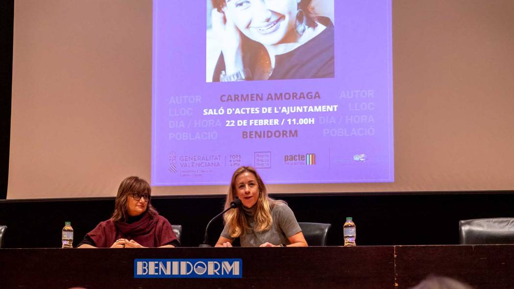 Un encuentro celebrado en el Salón de Actos del Ayuntamiento y al que han acudido, entre otros, la concejal de Patrimonio Histórico y Cultural, Ana Pellicer, que ha sido la encargada de presentar a Amoraga, asegurando que para Benidorm “es un placer” contar con su presencia y participar activamente de la campaña ‘Llegim als pobles’.