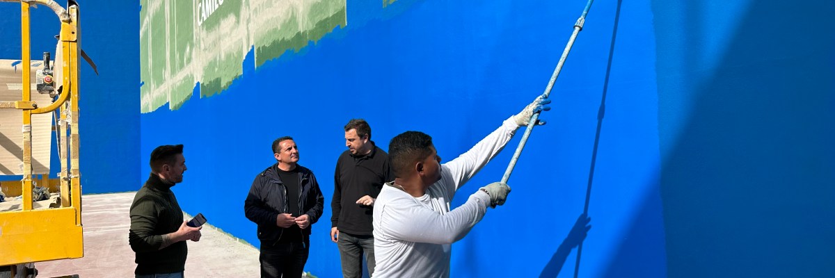 La primera actuación ha sido masillar todas las paredes y las juntas, que por dilatación y por el agua estaban abiertas. Para después aplicar un fijador acrílico en las tres paredes del frontón: lateral, frontal y trasera. Después se renovará por completo el suelo, con nueva capa de cemento, con membrana poliuretano con su pintura correspondiente. Después se pintarán todas las líneas de juego en suelo y pared lateral, que estipula la Federación para jugar al frontón. También se renovará todo el vallado perimetral de la instalación, los desagües y la iluminación del frontón. Se pintará todo de azul con el logo de “La Nucía, Ciudad del Deporte”.