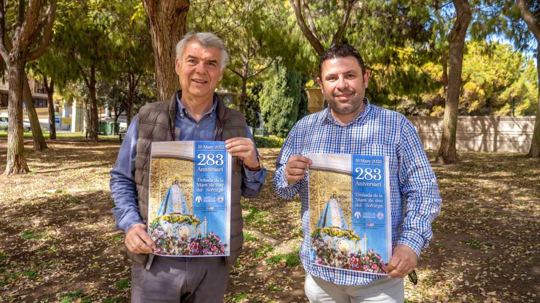 El edil del área, Jesús Carrobles, junto al presidente de la Comissió, Vicente Solaz, han informado hoy sobre todos los actos programados con motivo de esta efeméride y que arrancan este sábado, 11 de marzo, con la tradicional ofrenda en honor a la Virgen. A las 17.00 horas, las Reinas y Damas de les Festes Majors Patronals, Comissió de Festes, Abanderado y familia y Mayorales de Honor saldrán en pasacalle desde la Casa del Fester para recoger la imagen de la Mare de Déu del Sofratge en la sede de la Asociación Cultural Recreativa ‘La Barqueta’ y dirigirse al Paseo de Colón.