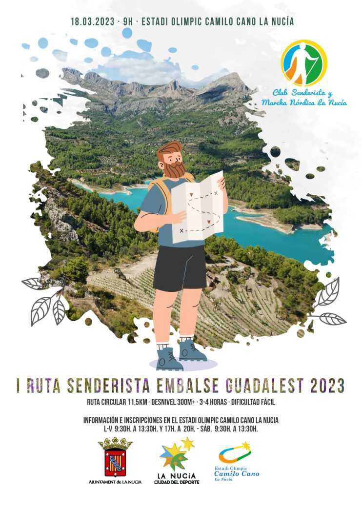 Este sábado 18 de marzo el Club Senderista y Marcha Nórdica La Nucía organiza la primera ruta senderista al embalse de Guadalest. La salida será a las 9 horas de la mañana desde el Estadi Olímpic Camilo Cano. Se trata de una ruta circular de baja dificultad que recorrerá el embalse de Guadalest.