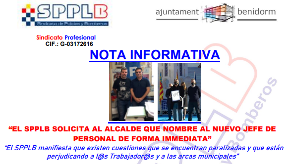 Mediante el siguiente manifestamos que hemos tenido conocimiento a través del tablón de anuncios de la sede electrónica del Ayuntamiento de Benidorm que, finalmente la Comisión de valoración y Valoración de Méritos y Memoria del Proceso para la provisión del puesto de “Jefe de de Servicio de Recursos Humanos”, ha acordado proponer al órgano competente el nombramiento de D. Francisco Manuel López Ocaña, circunstancia que nos congratula ya que de una vez por todas se ha