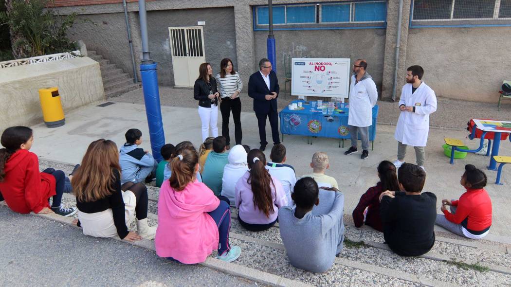 El alcalde de Benidorm, Toni Pérez, ha visitado la iniciativa acompañado por la concejal de Educación Maite Moreno, la de Medio Ambiente, Mónica Gómez, y el de Ciclo del Agua, José Ramón González de Zárate. Este último ha resaltado por su parte “la importancia que tienen estas campañas para concienciar y educar a los más pequeños en el correcto uso del aseo para que comprendan que eso contribuye a cuidar y proteger el medio ambiente y a que tengamos una mejor calidad del agua para evitar problemas en las instalaciones que la depuran”.