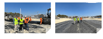 La capa de asfalto que se está aplicando esta semana es “binder” no definitiva, la capa final de rodadura se aplicará al finalizar las obras del Sector Serreta, para que no se deteriore por el paso de los camiones. Por ello las arquetas de registro quedarán elevadas temporalmente.