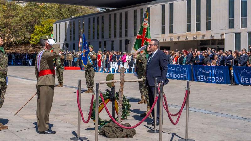 Tras agradecer “la deferencia” del MOE para que esta jura se celebrara en Benidorm, el alcalde ha asegurado que esta jura de personal civil es un “compromiso” de “amor a España y a los españoles” ante “una bandera que representa los valores constitucionales que nos hace ciudadanos libres e iguales ante la Ley”.