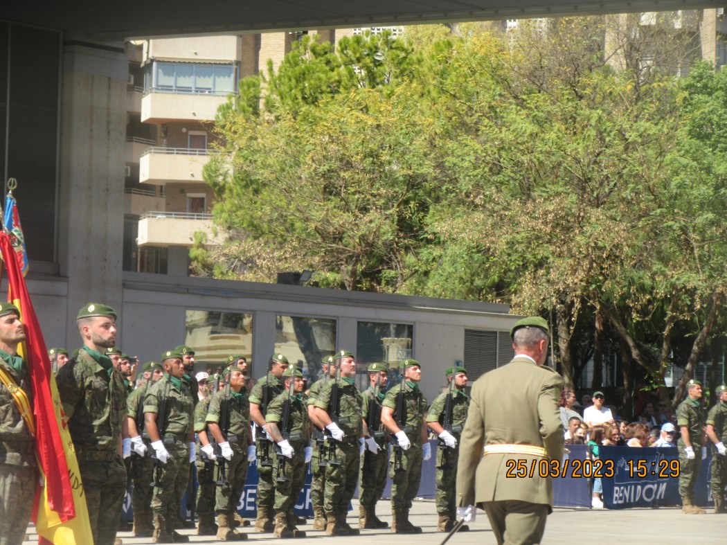 Más de medio millar de civiles llegados de toda España han jurado hoy bandera en Benidorm, en una jura civil organizada por el Mando de Operaciones Especiales (MOE) y que se ha desarrollado en la Plaza SSMM Reyes de España. Una jura y parada militar que ha presidido el general jefe del MOE, Francisco César García-Almenta, que ha estado acompañado en el podio por el alcalde, Toni Pérez.