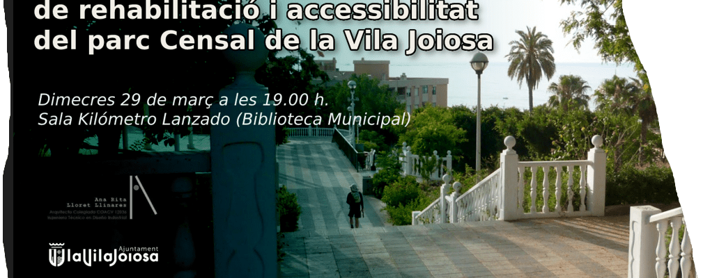 El Ayuntamiento de la Vila Joiosa, a través de su Concejalía de Parques y Jardines, ha organizado una presentación pública del proyecto de rehabilitación y accesibilidad integral del parque Censal de la localidad para el próximo miércoles 29 de marzo, a las 19.00 horas, en la Sala Kilómetro Lanzado de la Biblioteca Municipal de la Vila Joiosa (C/ Barranquet, 4).