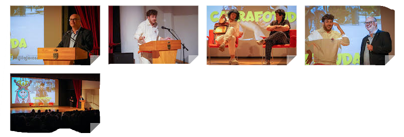 Seguidamente, el alcalde de la Vila Joiosa, Andreu Verdú, distinguió a ‘Cabrafotuda’ en nombre del Ayuntamiento de la Vila Joiosa por su estima y fomento de la lengua y por abanderar al municipio por todo el País Valencià en defensa de la lengua. Además, Verdú sorprendió al joven humorista al anunciar la próxima creación de un ‘Mural de la llengua’ en la Vila Joiosa como reconocimiento público permanente a su labor divulgativa.
