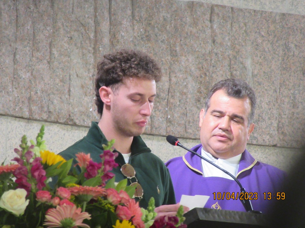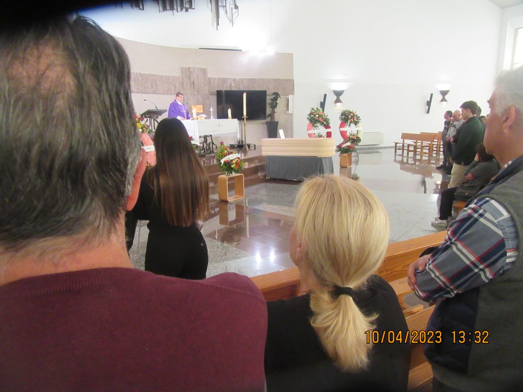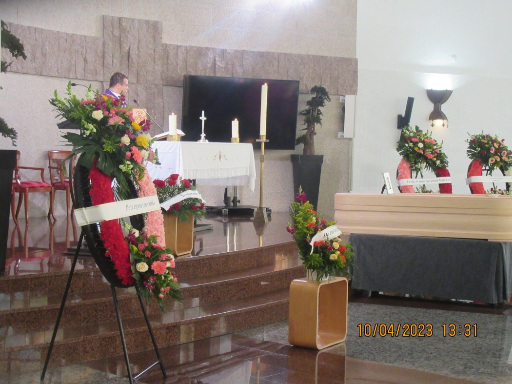 El viaje que ha emprendido lo tenemos que hacer todos ¡completamente todos! mas tarde o mas temprano pero todos tenemos nuestro numero en la tómbola de la vida y cuando sale, ¡cuando te toca! no hay vuelta de hoja. Así es la vida así le tenemos asumida desde que nacemos. Su hijo dijo una sentidas cariñosas palabras en el acto de la misa.
