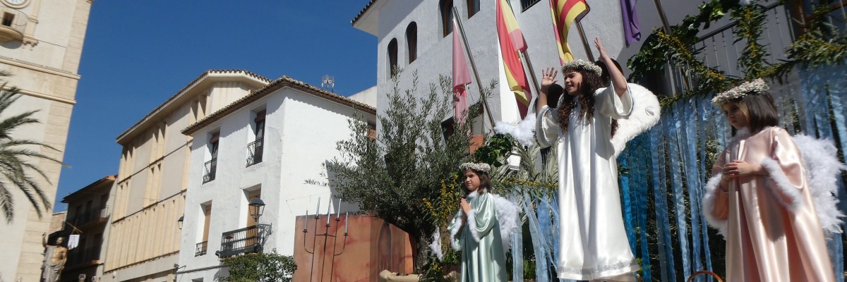 La procesión del “Encuentro” del Domingo de Pascua cuenta con uno de los actos más tradicionales de la Semana Santa Nuciera como es “l’Ambaixà”. Este año fue recitada por la niña Pepa Pastor Llorens, que fue acompañada de dos ángeles, el pasado domingo 9 de abril por la mañana. Al finalizar se lanzaron aleluyas y se soltaron varias palomas blancas para celebrar la resurrección de Jesucristo en el “Domingo de Pascua”.