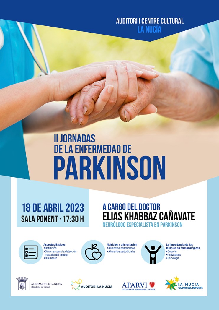 Hoy por la tarde, a las 17,30 horas en la sala Ponent de l’Auditori de La Nucía se desarrollarán las “II Jornadas de la enfermedad de Parkinson” en La Nucía. Estas jornadas contarán con una charla informativa a cargo del doctor Elías Khabbaz Cañavate. La entrada será libre y gratuita.
