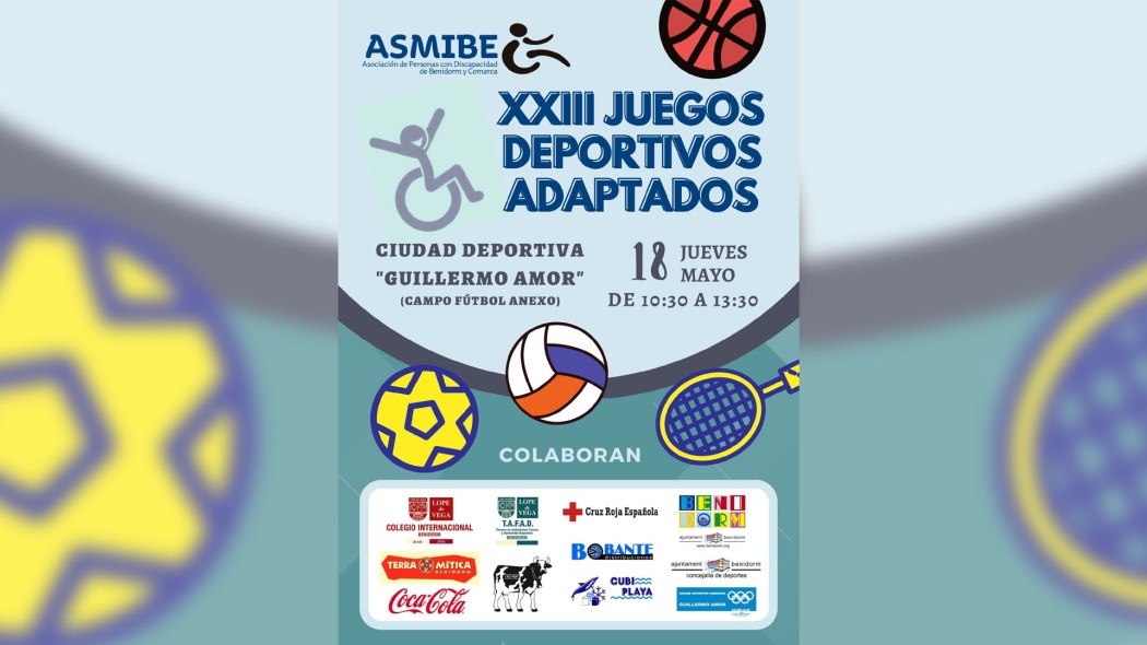 Mañana jueves 18 de mayo la asociación Asmibe celebrará la XXIII edición de los Juegos Deportivos Adaptados que se disputarán en el campo de fútbol de césped artificial de la Ciudad Deportiva Guillermo Amor. Los juegos darán inicio a las 10,30 de la mañana con la recepción de los centros participantes. Media hora después comenzarán los juegos y sobre las 12,30 tendrá lugar la entrega de trofeos y medallas a todos los participantes.