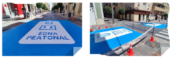 • Se han pintado seis señales viales para alertar y concienciar a los conductores sobre la prohibición de ingresar con vehículos a motor en esta zona reservada a viandantes y terrazas
