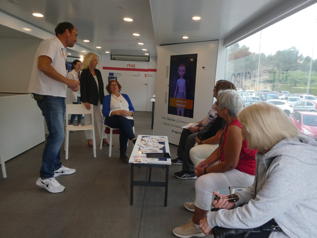 Desde ayer por la tarde el autobús digital de RTVE se puede visitar de manera gratuita en La Nucía. Esta campaña bajo el lema “Tu futuro se escribe con D” está destinada a romper con la brecha digital de las nuevas tecnologías para todas las personas. Este autobús divulgativo se encuentra en el parking del Instituto La Nucía (carrer Rotes) y se puede visitar de forma gratuita.