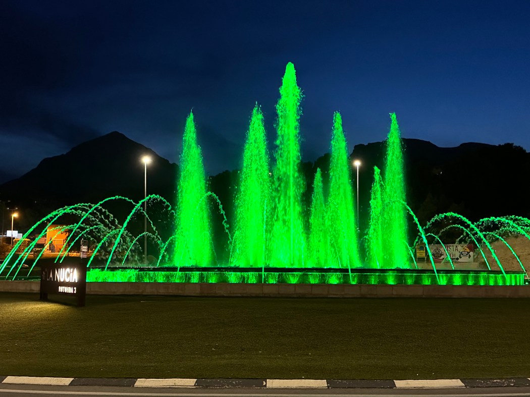 Desde anoche los edificios de La Nucía (Ayuntamiento, Estadi Olímpic y pabellón Muixara) y rotonda 3 están iluminados de verde por el “Día Internacional de la Miastenia”. De esta forma se quiere dar visibilidad a la lucha contra esta enfermedad neuromuscular de la Miastenia Gravis, #miasteniavisible. El Ayuntamiento de La Nucía se ha sumado a esta campaña nacional de iluminación en verde de los edificios públicos, organizada desde Asociación AMES (Asociación Miastenia de España, @amesmiastenia).
