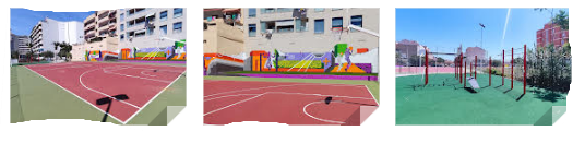 Los trabajos realizados han rehabilitado el pavimento y mobiliario deportivo de la pista municipal de baloncesto de la calle Ciudad de Requena y su entorno con la instalación de elementos de descanso y una intervención artística de gran tamaño en una de las paredes colindante a la cancha, que ha mejorado la estética urbana de este espacio deportivo y de recreo.