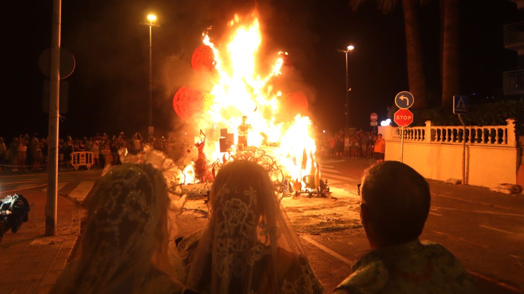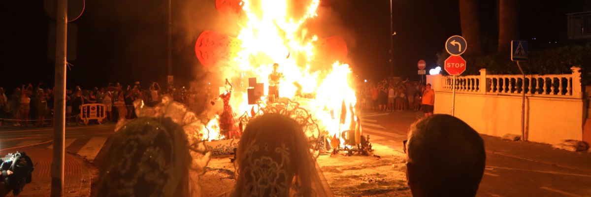 Por la noche, pasadas las 23 horas ardía el monumento infantil y una hora después hacía lo propio la hoguera principal entre los aplausos de los asistentes. Hasta allí se desplazó el alcalde Toni Pérez, acompañado por la concejal de Fiestas, Mariló Cebreros, y los ediles Ángela Zaragozí, Francisco Muñoz y Luis Navarro que estuvieron junto a los representantes de la hoguera, además del artista Sebastián Tolsa.