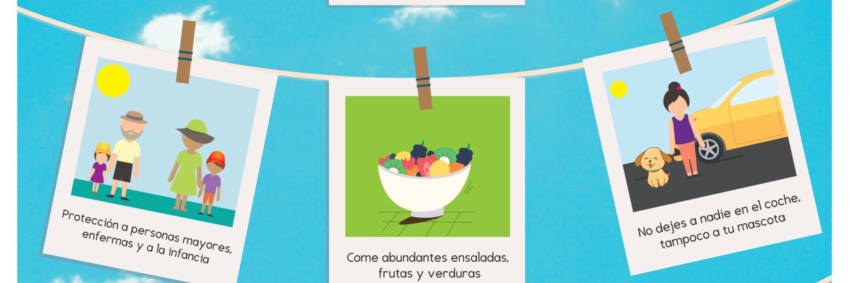 Estas recomendaciones generales de “Disfruta del Verano con Salud” son: 1. Beba agua abundantemente, aunque no tenga sed, al menos 2 litros al día; evite el alcohol y la cafeína, 2. Tome una ducha o baño, con agua templada en los momentos de calor más intenso, 3. Evite el exceso de sol, sobre todo entre las 12 y las 16 horas, 4. Coma frutas y verduras. Evite las comidas copiosas, 5. En su domicilio sitúese en las zonas más frescas, cierre persianas y ventanas y abra por la noche para ventilar, 6. Ayude a las personas más frágiles de su entorno: personas mayores, enfermas, dependientes y a la infancia, 7. Si es muy mayor, toma medicación o padece una enfermedad crónica, acuda a su Centro de Salud para informarse acerca de las medidas complementarias que debe adoptar, 8. Utilice ropa ligera y holgada, preferentemente de algodón y de colores claros, 9. Si sale a la calle, tome medidas de protección: use sombrero, gafas de sol y crema protectora solar.Busque la sombra, 10. No deje nunca a nadie en un vehículo cerrado o estacionado, tampoco a su mascota y 11. Si va a hacer deporte, es aconsejable no realizarlo durante las horas centrales del día