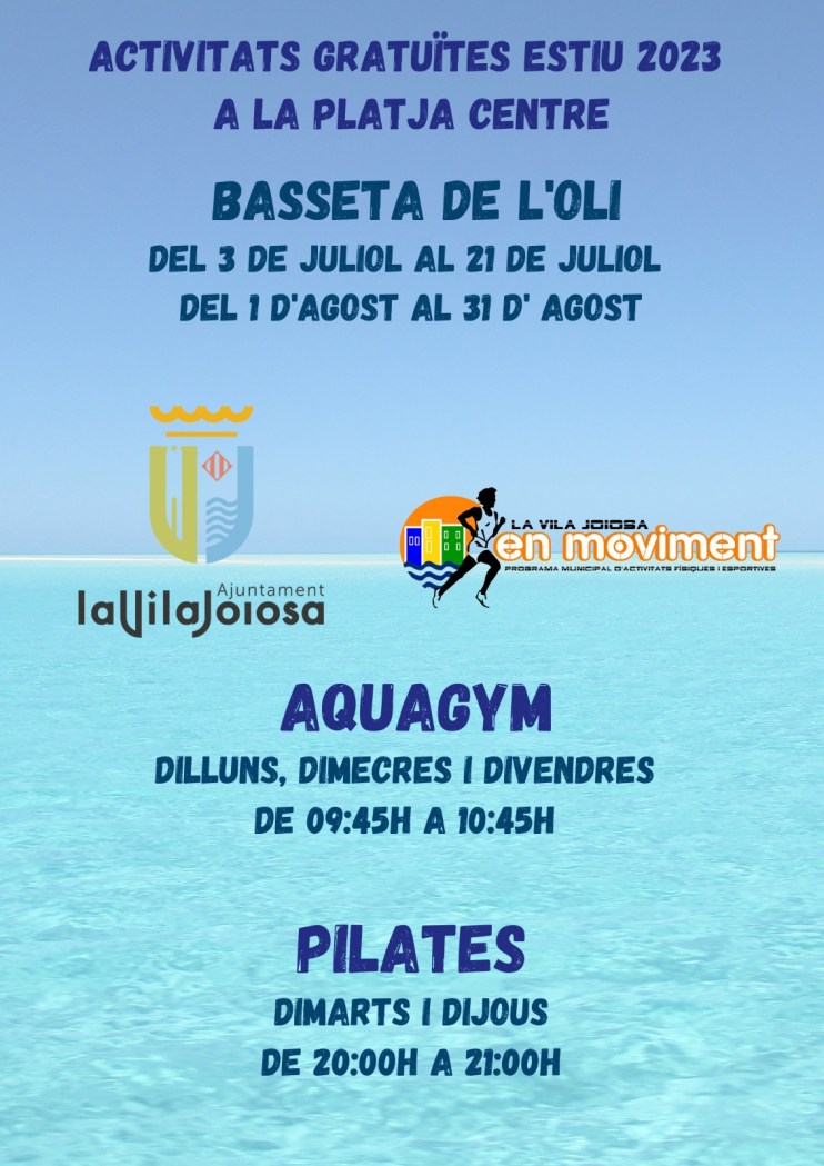 Las clases de aquagym se impartirán los lunes, miércoles y viernes de 9.45 a 10.45 horas y las clases de pilates se realizarán los martes y jueves de 20.00 a 21.00 horas en la zona de la Basseta de l’Oli, junto al puerto deportivo.
