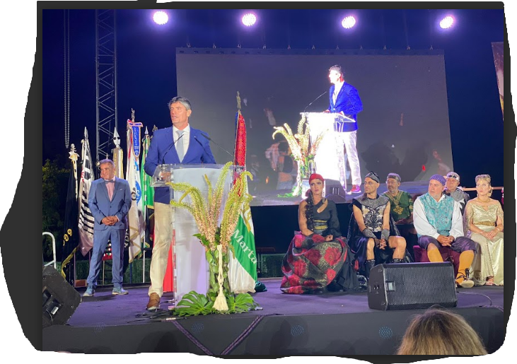 Además de conocer a los máximos representantes de las fiestas de Moros y Cristianos, también se presentaron los capitanes y abanderados de las 22 compañías, los embajadores y el emisario del Rey Moro, de la compañía Moros Tuareg, Vicent Martínez. Este es el primer acto de las fiestas de Moros y Cristianos, declaradas de Interés Turístico Internacional desde 2003, e incluye el pregón anunciador de las fiestas, que ha sido proclamado por la pregonera 2023, la periodista Marta Llinares.