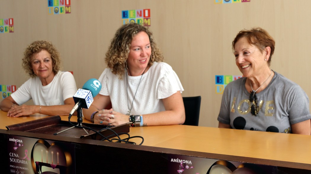 Anémona, Grupo de autoayuda de mujeres con cáncer de mama, celebra este sábado, día 8, su tradicional cena solidaria a partir de las 21.30 horas en la finca Les Palmeres. Los tickets para el evento ya están a la venta en la sede de la organización, en la calle La Biga número 14, según han informado hoy la concejala de Igualdad, Ángela Zaragozí, y la presidenta de Anémona, María Botella, en rueda de prensa.