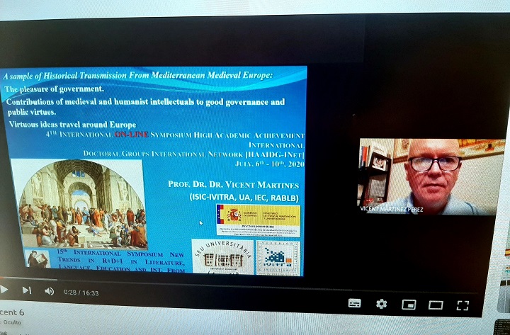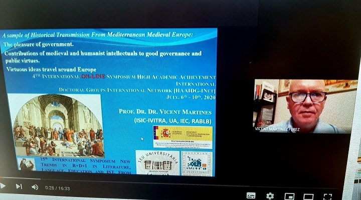 El VII Simposio Internacional de Grupos de Alto Rendimiento de Doctorado (RINT- GARAID) de la Universidad de Alicante a través de su Seu Universitària de La Nucía reunió la semana pasada a 50 estudiantes-doctorandos, profesores y catedráticos de cuatro universidades: Alicante, Córdoba, Murcia, Universidad del País Vasco. Los estudiantes que participaron en este encuentro online están cursando sus programas de doctorado en estas cuatro universidades españolas, llegados de Grecia, Rumanía, Chipre e Italia.