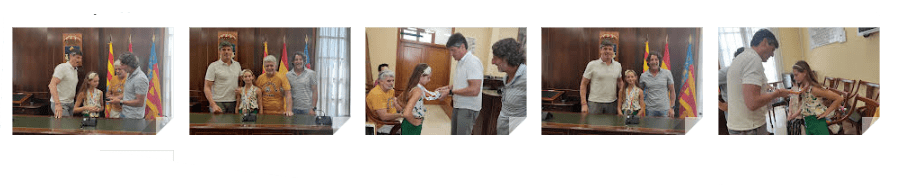 El Alcalde Marcos Zaragoza y el concejal de Deportes, Peyo Lloret, han recibido este mañana en el Ayuntamiento a la nadadora vilera Cynthia Sánchez y su entrenador Juan Carlos Hernández, del club de natación Benidorm. Zaragoza y Lloret les han felicitado por el último logro de la nadadora vilera, quien acaba de conseguir el oro en el Campeonato de España Salvamento y Socorrismo, que se ha celebrado en Mazarrón, cuyo galardón ha dedicado a su entrenador. En este torneo, además, Cynthia Sánchez ha obtenido el récord nacional en 5 segundos, en la categoría de alevín en la modalidad de 4×50 metros de relevo socorrista y también ha sido galardonada con plata en carrera con nipper 4×12.50m relevo remolque maniquí y bronce en 50m remolque maniquí con aletas.