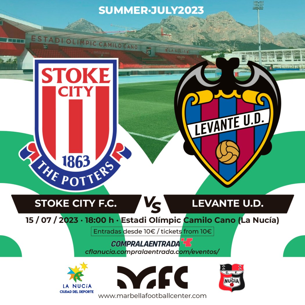 El Stoke City, conjunto ingles de EFL Championship (segunda división inglesa), llegó el pasado 10 de julio a la comarca de la Marina Baixa y permanecerá durante siete días entrenando en en el Melia Villaitana Football Center. El Levante UD inició también la pretemporada el pasado lunes en el Saler de cara al inicio de LaLiga Hypermotion 2023-2024. Este partido en el Estadi Olímpic Camilo Cano servirá de test inicial para ambos conjuntos.