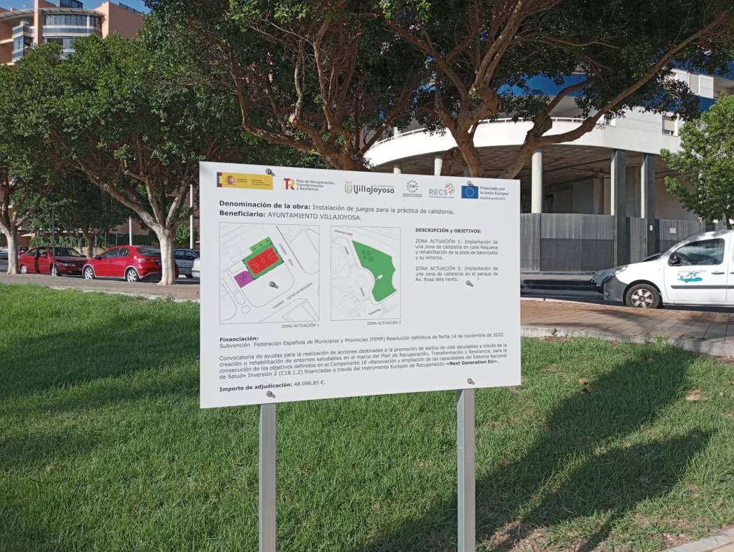 El Ayuntamiento de Villajoyosa ha recepcionado esta mañana la implantación de juegos para la práctica de la calistenia en los parques de la calle Ciudad Requena y de la avenida Rosa dels Vents, en La Cala, así como la rehabilitación de la pista de baloncesto de la calle Ciudad de Requena.