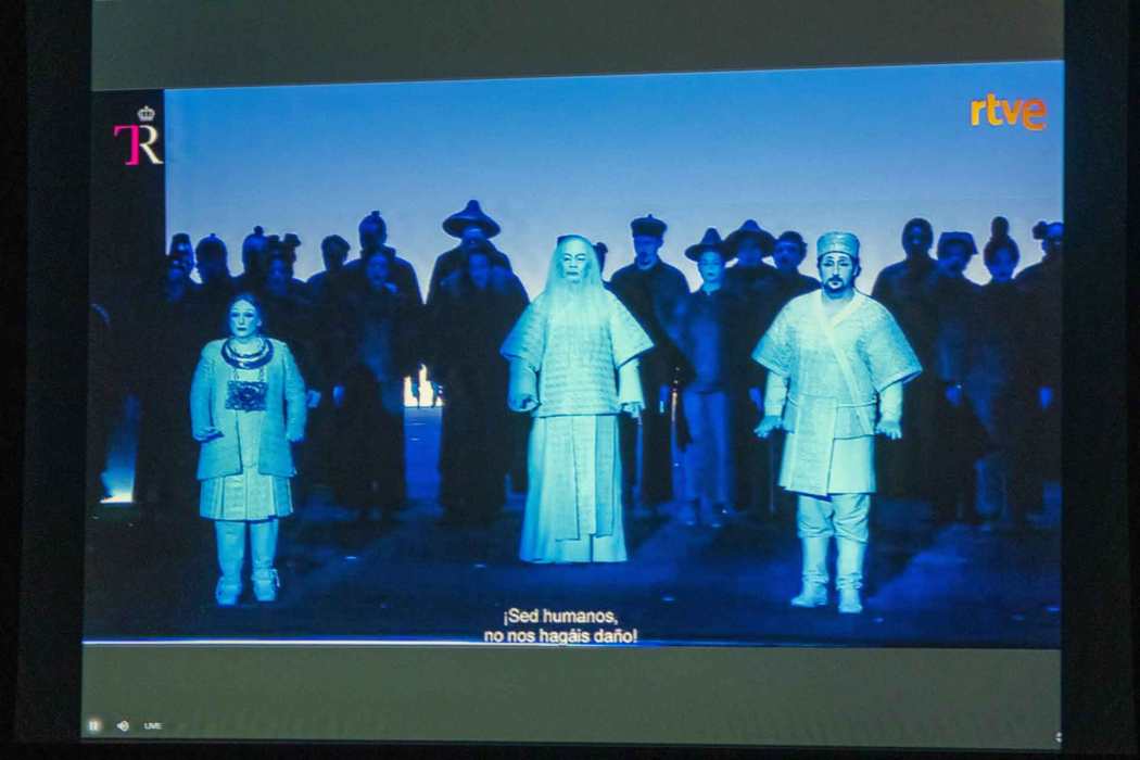 El Salón de Actos del Ayuntamiento de Benidorm ha acogido en directo, dentro de la programación de actividades de la Concejalía de Cultura, la retransmisión de ‘Turandot’, ópera de Giacomo Puccini, que, con motivo de la octava edición de su Semana de la Ópera, el Teatro Real de Madrid ha ofrecido, de manera totalmente gratuita, a entidades públicas y culturales de toda España.