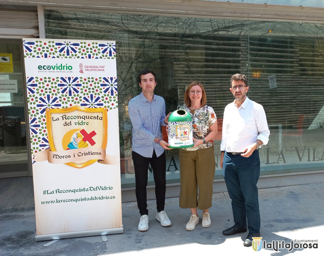El Ayuntamiento de Villajoyosa, en colaboración con la Generalitat Valenciana, y la entidad sin ánimo de lucro Ecovidrio, encargada de la gestión del reciclado de los residuos de vidrio en España, ponen en marcha la campaña “La Reconquista del Vidrio” con el fin de concienciar a los ciudadanos y los festeros de la importancia de separar correctamente los residuos generados en los cuarteles festeros durante los días de fiesta. Para ello, se instalarán 16 contenedores decorados en las inmediaciones de las sedes festeras. Todas las compañías y peñas implicadas activamente en la campaña y que reciclen correctamente los residuos de envases de vidrio entrarán en el sorteo, en cada municipio, de un dispensador de vidrio exclusivo con la imagen de campaña.