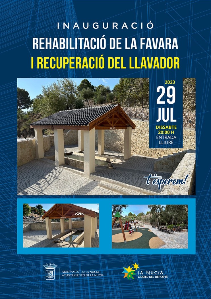 Este sábado 29 de julio a las 20 horas se realizará el acto de inauguración de la “Rehabilitació de la Font de la Favara i Recuperació del Llavador”. Gracias a estas obras se ha podido recuperar el “Llavador” y toda la sillería de piedra que lo rodeaba. Un patrimonio histórico que La Nucía recupera para ponerlo en valor como atractivo turístico y cultural y que podrá ser visitado a partir de esta semana.