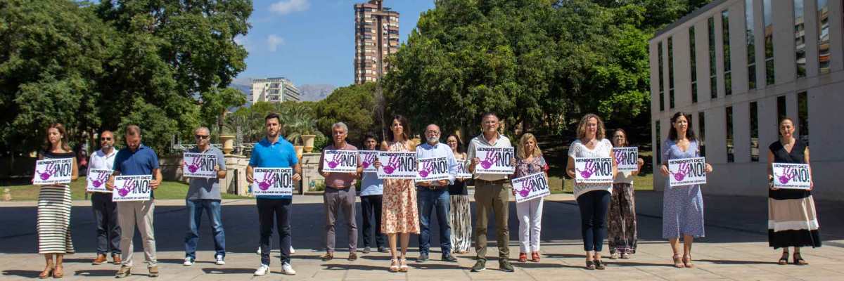 La corporación municipal de Benidorm ha expresado hoy su condena con un minuto de silencio por la última víctima de violencia de género, una mujer de 22 años de nacionalidad nicaragüense, que fue asesinada el pasado lunes 31 de julio en la localidad sevillana de Utrera.