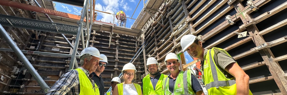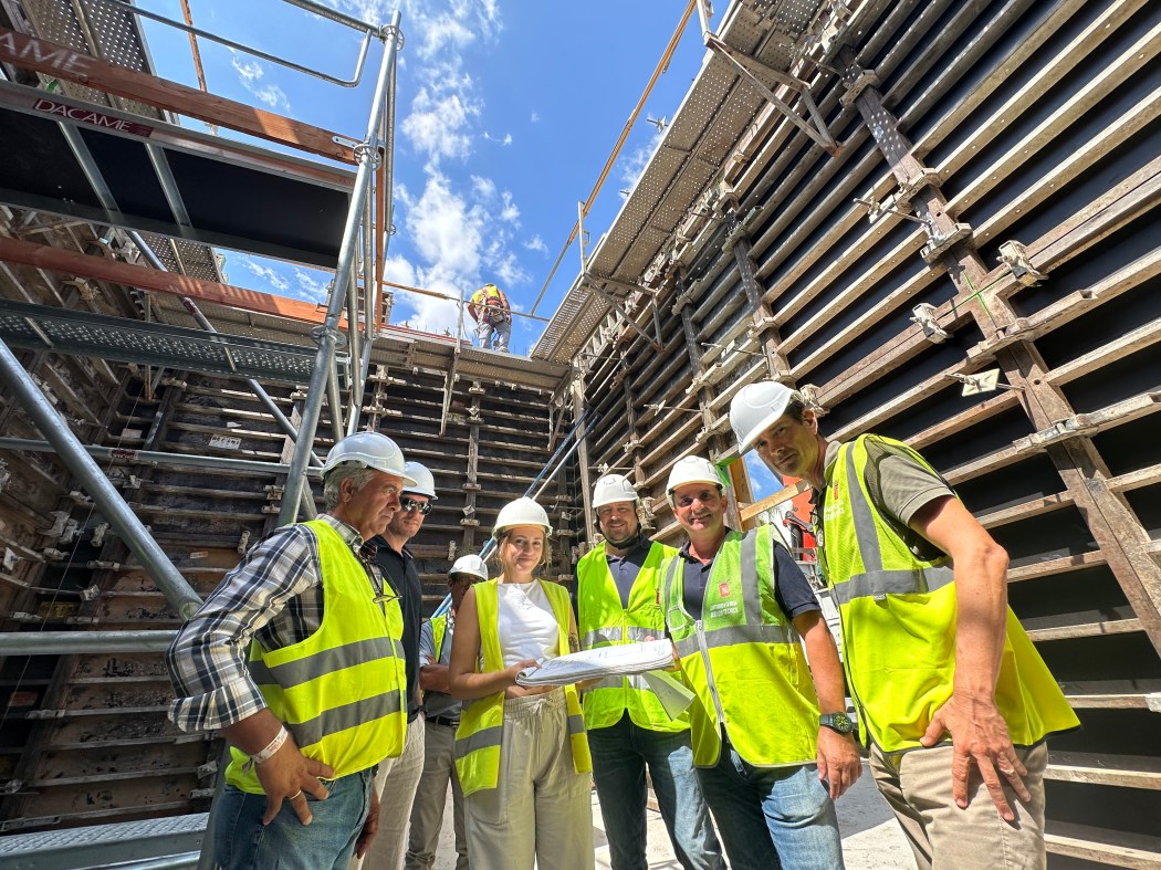 En la visita a las obras del futuro “Edifici de l’Esport” estuvieron presentes participaron el arquitecto José Luis Campos, el jefe de obra Francisco Pardines, el alcalde Bernabé Cano y los concejales Sergio Villalba, Miguel Ángel Ivorra y Pedro Lloret.