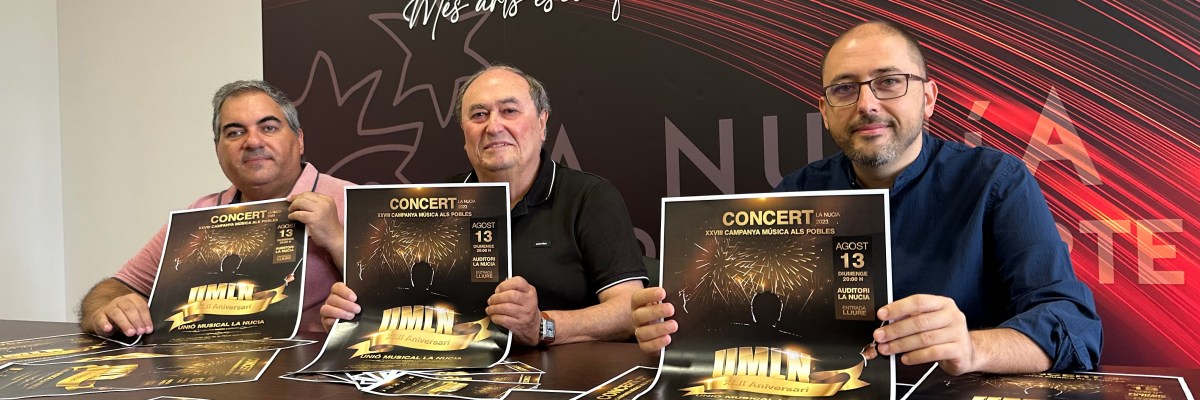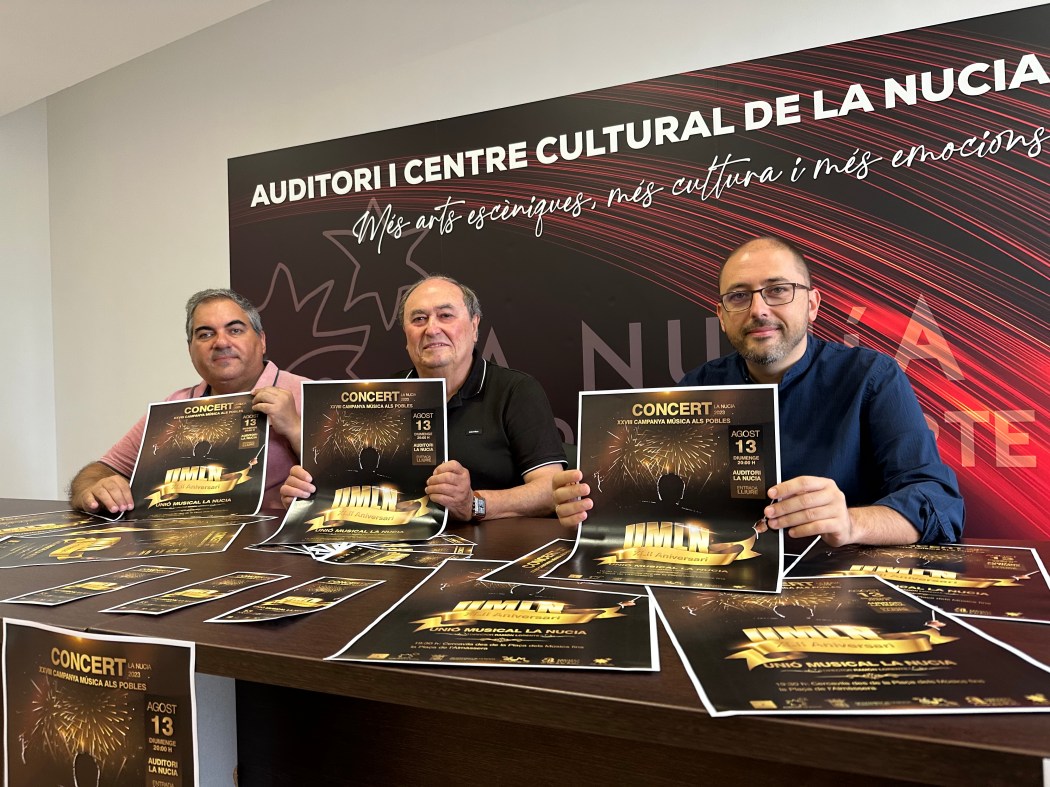 Esta actuación está organizada por la Unió Musical La Nucía (UMLN) y las concejalías de Cultura y Fiestas con la colaboración de la Diputación de Alicante dentro de la “XXVIII Campanya Música als Pobles”. La presentación del “Concert XLII Aniversari de la Unió Musical La Nucia” ha contado con la presencia de Ramón Lorente, director Unió Musical La Nucía, Juan José Ivorra, pte. Unió Musical La Nucía y Pedro Lloret, concejal de Cultura.