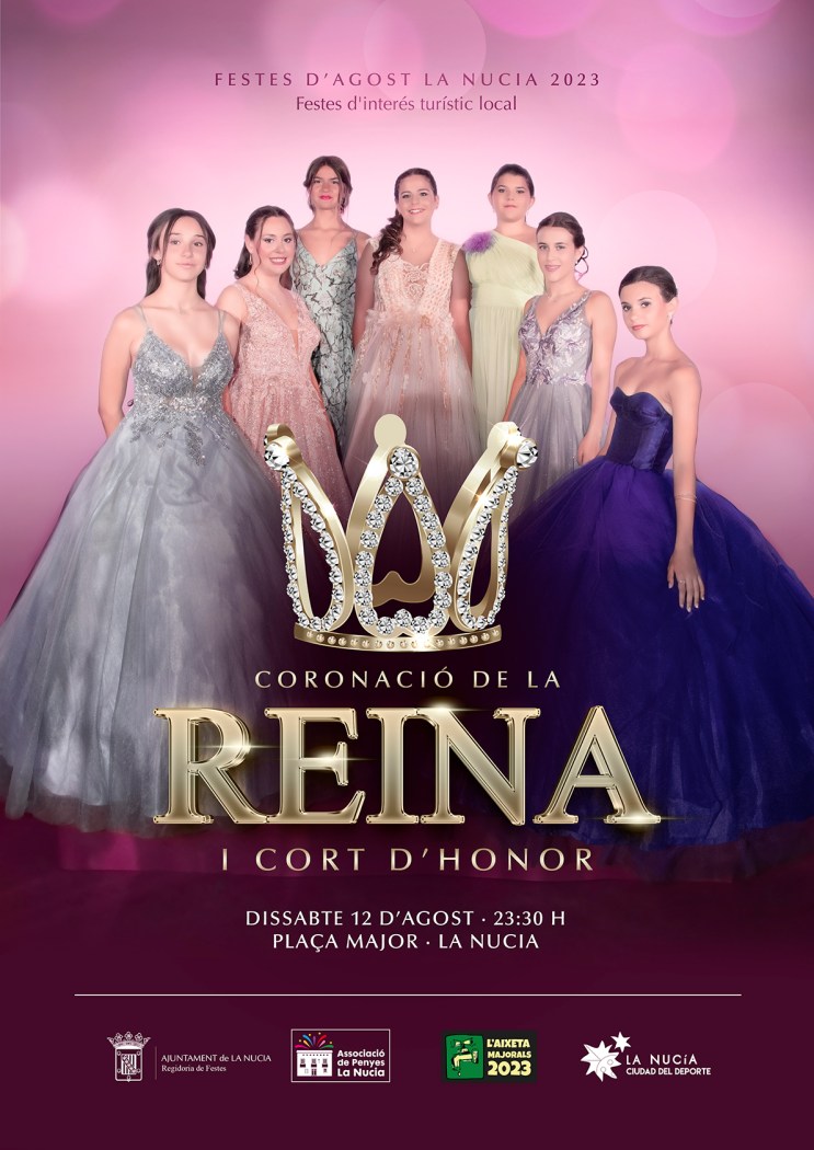 Mañana por la noche será la “Coronació” de la Reina y damas de honor de “les Festes d’Agost” 2023 de La Nucía. A partir de les 23,30 horas en la plaça Major tendrá lugar este relevo real La “Coronació” está organizado por els Majorals 2023 Penya L’Aixeta con la colaboración de la concejalía de Fiestas del Ayuntamiento de La Nucía y l’Associació de Penyes La Nucia.