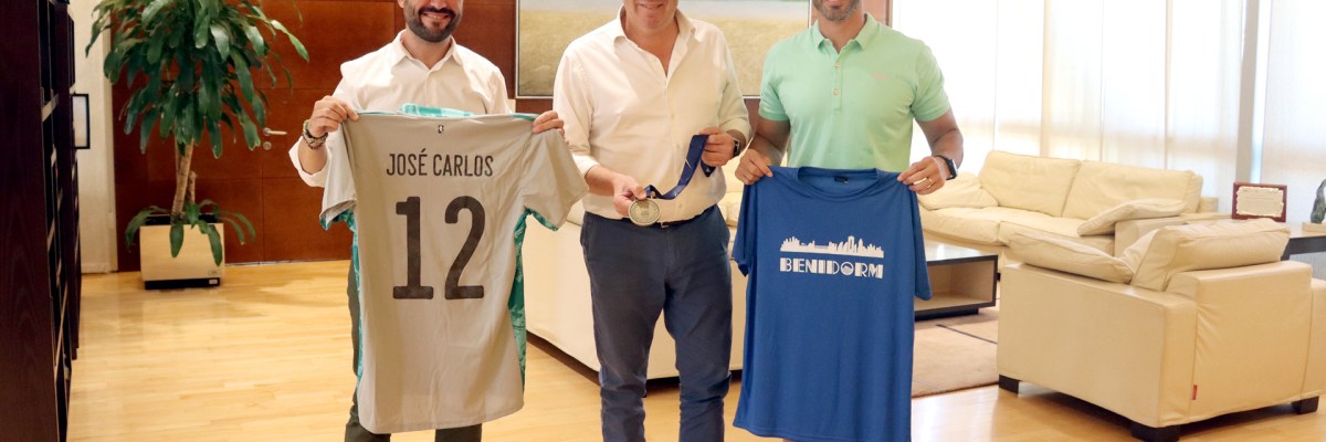 El alcalde, Toni Pérez, ha recibido hoy a los deportistas benidormenses José Carlos Caballero y David Carreño que recientemente han sumado sendos títulos europeos a su palmarés. Así, el primero ha logrado el bronce en Fútbol Playa con la selección nacional en los III Juegos Europeos celebrados a finales de julio en Cracovia (Polonia); mientras que el segundo se ha proclamado campeón de Europa sub-17 con los ‘Hispanos Promesas’ durante el campeonato celebrado en Göteborg (Suecia) a principios de julio.