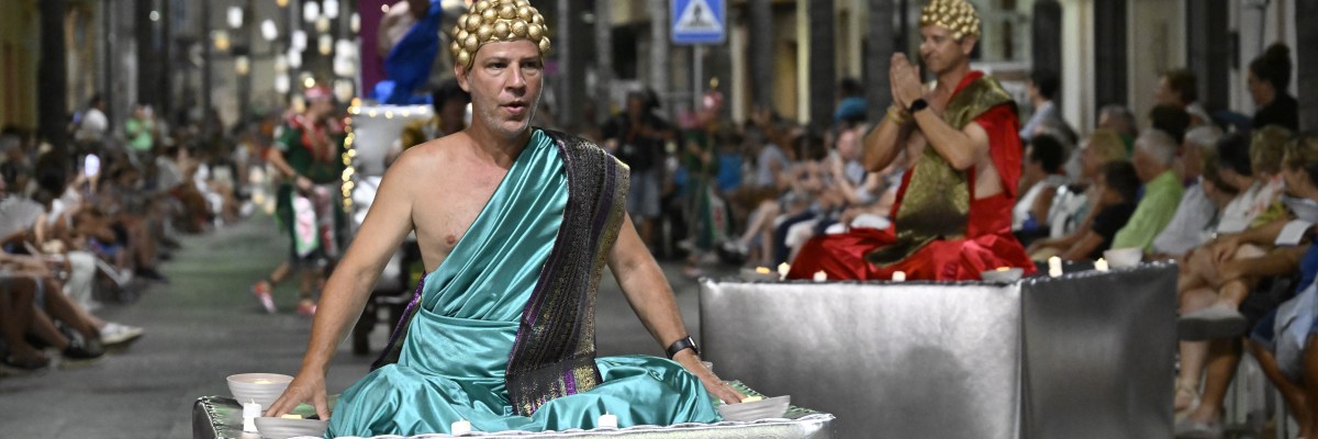 “Barbie”, “Fórmula 1”, “Casino Las vegas”, “Xina”, “Grease”, “Motos Vespa”, “Medusas”, “Festival de les Llums de Tailandia”, “El Món Marí” o “El Foc” fueron algunas de las temáticas de las 20 penyas en la “Cabalgata de disfraces” de les Festes d’Agost de La Nucía 2023. Todas las penyas desfilaron con sus disfraces y carrozas a lo largo de la avenida Carretera y Marina Baixa. Miles de personas llenaron las sillas a lo largo del desfile para ver en directo los disfraces de las penyas de La Nucía.