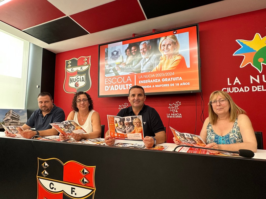 La presentación de la programación de la “Escuela de Adultos 2023-2024 de La Nucía” contó con las profesoras Merche Herreiz y María Martí junto a Sergio Villalba, concejal de Educación y Bernabé Cano, alcalde de La Nucía.