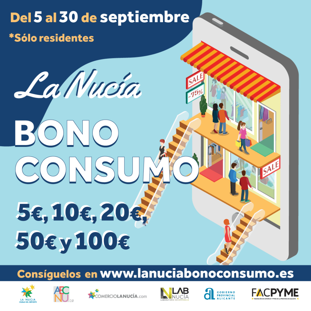 La III Campaña de “Bono Consumo” de La Nucía comenzó el 5 de septiembre y se desarrollará durante todo el mes, hasta el 30 de septiembre. Los nucieros ya pueden hacer uso de esta campaña en la que se puede comprar y consumir en La Nucía en los 70 comercios adheridos a la campaña durante el mes de septiembre (únicamente) y beneficiarse, ya que al comprar con el “bono consumo” el valor del dinero se duplica.