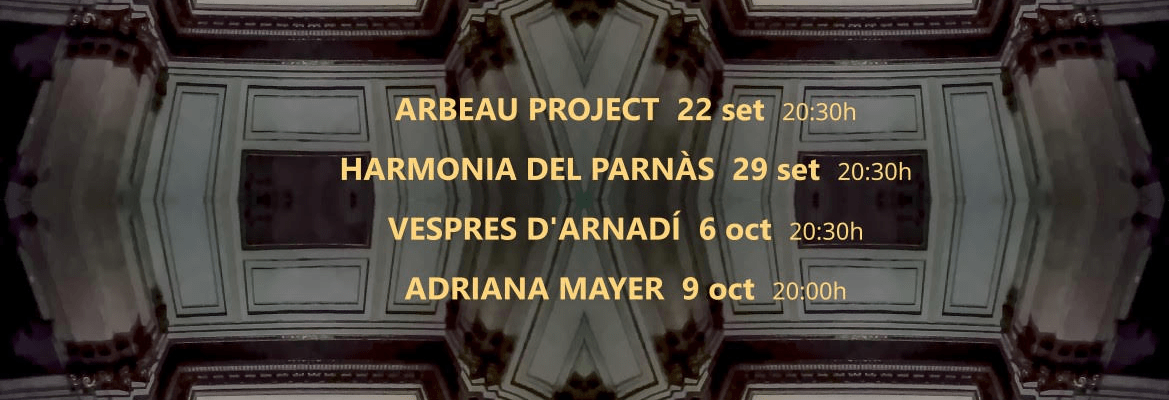 El siguiente viernes, 6 de octubre, vuelve a este escenarnio la orquesta barroca Vespres d’Arnadí. En esta ocasión, presentarán conciertos para instrumentos solistas de Johann Sebastian Bach, como son el concierto en La mayor para clavicémbalo, cuyo solista será el director del grupo Dani Espasa, así como el doble concierto para oboe y violín protagonizado por el director de Ateneu d’Història i Art, Pere Saragossa, y el joven ruso Vadym Makarenko, y el 5º concierto de Brandenburgo con Marina Durany al traverso, además de los mencionados solistas del violín y el clavicémbalo.