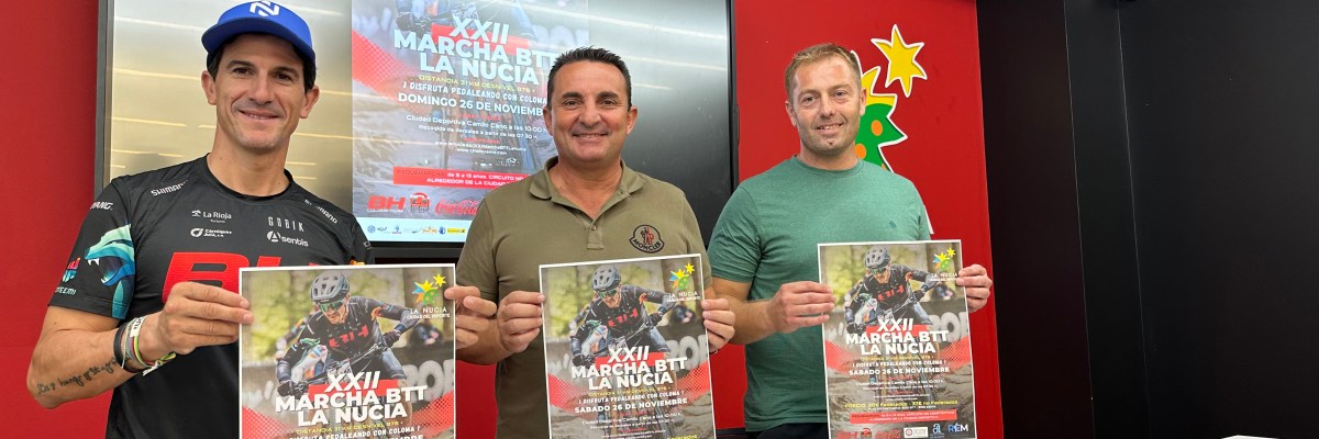 La salida de la XXII Marcha BTT de La Nucía será el domingo 26 de noviembre a las 10 de la mañana desde la Ciutat Esportiva Camilo Cano. La recogida de dorsales será a partir de las 7,30 h. de la mañana. Esta edición tendrá un recorrido de 31 km. con un desnivel positivo de 976 metros, con sendas, trialeras y paso por el “mítico” Bikepark de La Nucía, por alguna de las zonas donde se celebró la “Super Cup Massi UCI 1”