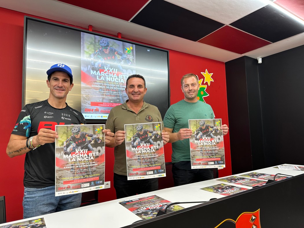 La presentación de la prueba deportiva ha contado con la presencia de Carlos Coloma, medallista olímpico de mountain bike XCO (Río 2016) y director técnico de “La Nucía Coloma Bike Club”, Daniel Flores, profesor del Taller de Empleo, Sergio Villalba, concejal de Deportes y Bernabé Cano, alcalde de La Nucía