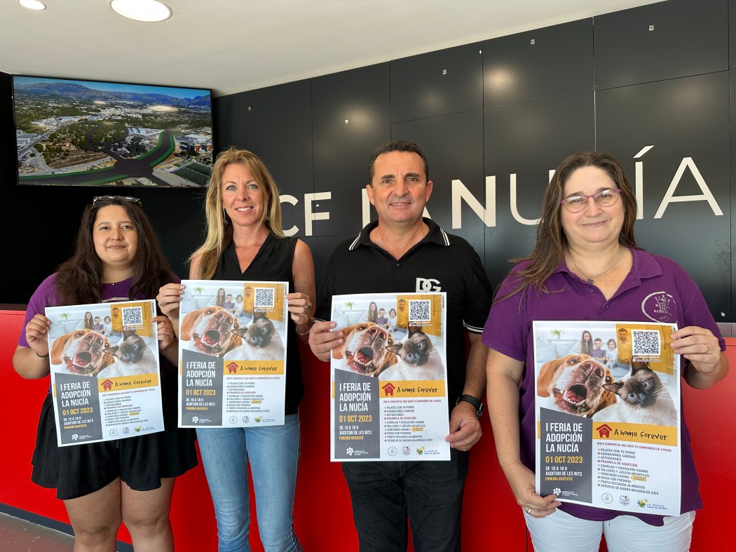 La presentación de esta I Feria de Adopción Animal contó con la presencia de Nuria López Garcíay y Anne Prieto Buades de la Asociación “Reinas del Biberón”, Jessica Gommans, concejala de Protección Animal y Bernabé Cano, alcalde de La Nucía.