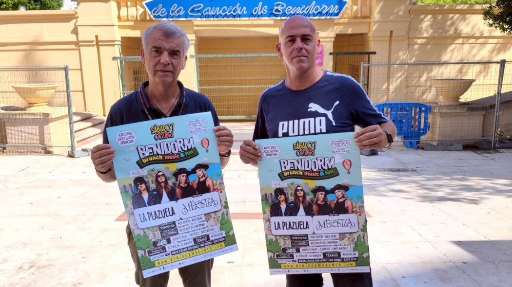 El Auditorio Julio Iglesias del Parque de l’Aigüera de Benidorm acoge este sábado, 7 de octubre, la primera edición del festival de música ‘Benidorm Brunch, Music & Fun’, un evento que traerá hasta la ciudad las actuaciones de La Plazuela y Mëstiza y que, además, contará con la actuación de varios pinchadiscos así como puestos de comida rápida. El concejal de Festivales y Eventos, Jesús Carrobles, se ha reunido hoy con los organizadores para conocer de primera mano todos los detalles de este festival, el último de la temporada, que se desarrollará entre las 13 y las 0.30 horas, continuando posteriormente la fiesta en Penélope Discoteca.