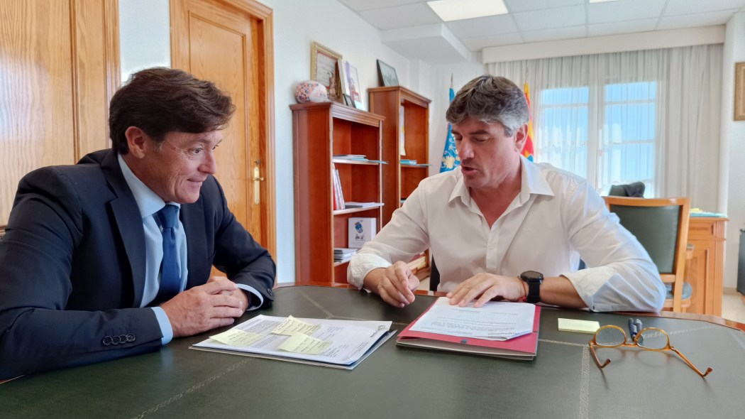 El Alcalde Marcos Zaragoza y el director general de Administración Local, José Antonio Redorat, se han reunido esta mañana para iniciar la redacción del acuerdo con el que se iniciará el procedimiento que permitirá delimitar de manera definitiva los lindes territoriales entre los municipios de Villajoyosa y Finestrat, así como los límites geográficos con las localidades de El Campello y Aigües.