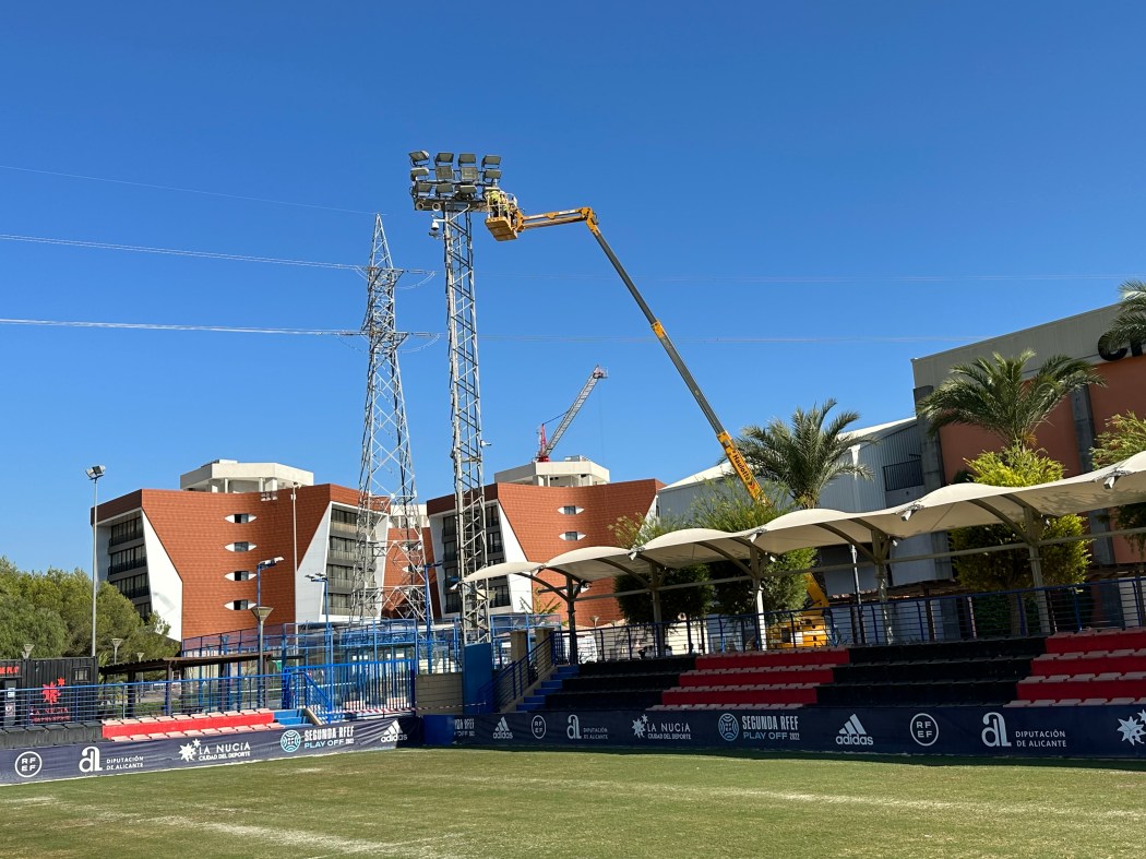 Este mes de octubre han comenzado las obras de cambio de luminarias a led de gran parte de la Ciutat Esportiva Camilo Cano de La Nucía. Esta actuación supone una inversión de 1.150.000 euros y es posible gracias a la subvención del 100% de la inversión por parte del Ministerio de Cultura y Deporte a través del Consejo Superior de Deportes en el programa “Obras de Modernización de Instalaciones Deportivas para acoger Eventos Deportivos Internacionales en cuanto a Eficiencia Energética, Inclusión y Sostenibilidad” dentro de los Fondos Europeos del “Plan de Recuperación, Transformación y Resiliencia”. Esta actuación concluirá a finales del mes de noviembre.