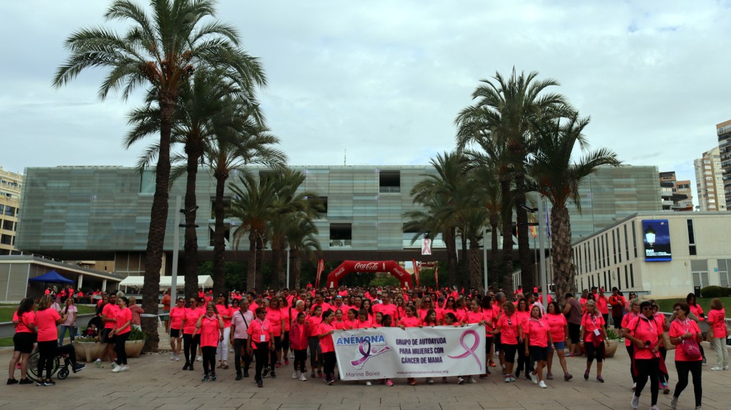 Alrededor de 6.000 personas han participado este domingo en una nueva edición de la Marcha Solidaria organizada por el Grupo de Autoayuda para Mujeres con Cáncer de Mama y Ginecológico, Anémona Marina Baixa, que ha recorrido la distancia de unos 4,5 kilómetros que enlaza el Casco Antiguo y el Paseo Marítimo de Poniente y el de Tamarindos, teniendo como punto de partida y destino el Ayuntamiento de Benidorm. El alcalde de la ciudad, Toni Pérez, ha encabezado la marcha junto a la presidenta de Anémona, María Botella; la edil de Igualdad, Ángela Zaragozí, además de otros miembros de la Corporación Municipal; las reinas de las Fiestas Mayores Patronales, Angélica Morenilla Such y Daniela Talavera Ventura, junto a sus cortes de honor; y muchísimo público que ha participado o ha arropado a esta “marea rosa” a su paso por las calles de la ciudad.