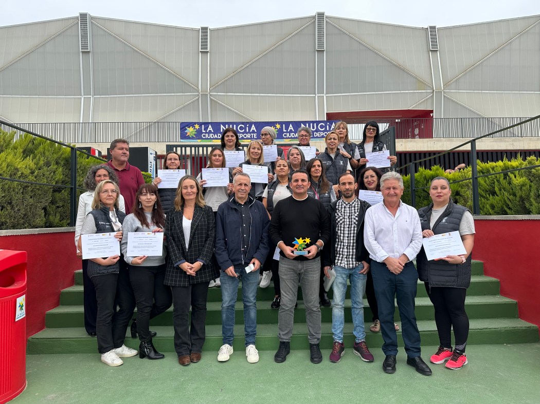 Patricia Alcaraz, directora del Taller, Serafín López, concejal de Empleo y Bernabé Cano, alcalde de La Nucía participaron en la entrega de diplomas y fin de curso del Taller de Empleo para Mujeres “El Captivador I” en el Estadi Olímpic. También estuvieron en el acto Antonio Piñera, director del Centro de Formación y Desarrollo Local y Blas Martínez, director del Espai Labora Benidorm.